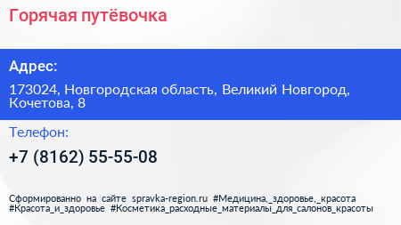 Горячая путёвочка по адресу 173024, Новгородская область, Великий Новгород, Кочетова, 8 в дальнейшем Организация, размещена в следующих категориях: