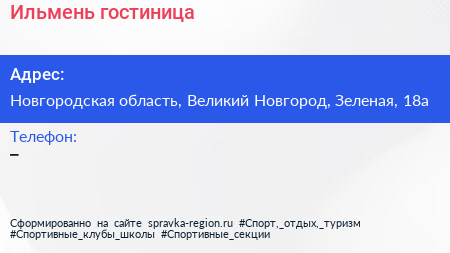 Ильмень, гостиница по адресу Новгородская область, Великий Новгород, Зеленая, 18а в дальнейшем Организация, размещена в следующих категориях: