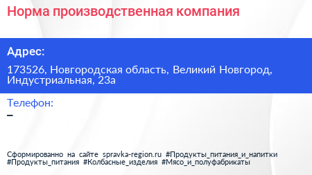 Норма, производственная компания по адресу 173526, Новгородская область, Великий Новгород, Индустриальная, 23а в дальнейшем Организация, размещена в следующих категориях: