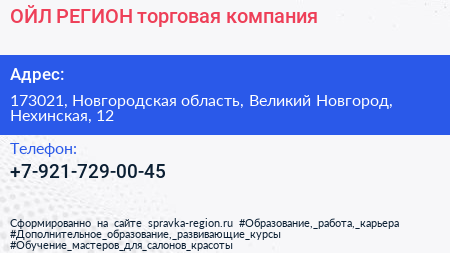 ОЙЛ РЕГИОН, торговая компания по адресу 173021, Новгородская область, Великий Новгород, Нехинская, 12 в дальнейшем Организация, размещена в следующих категориях: