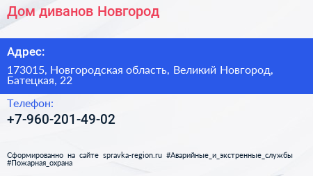 Дом диванов Новгород по адресу 173015, Новгородская область, Великий Новгород, Батецкая, 22 в дальнейшем Организация, размещена в следующих категориях: