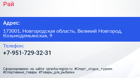 Рай по адресу 173001, Новгородская область, Великий Новгород, Козьмодемьянская, 9 в дальнейшем Организация, размещена в следующих категориях: