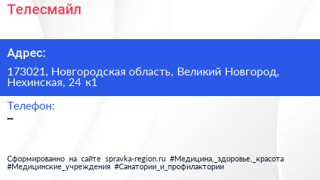 Телесмайл по адресу 173021, Новгородская область, Великий Новгород, Нехинская, 24 к1 в дальнейшем Организация, размещена в следующих категориях: