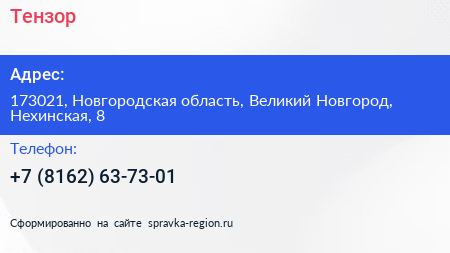 Тензор по адресу 173021, Новгородская область, Великий Новгород, Нехинская, 8 в дальнейшем Организация, размещена в следующих категориях: