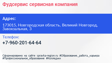 Фудсервис, сервисная компания по адресу 173015, Новгородская область, Великий Новгород, Завокзальная, 3 в дальнейшем Организация, размещена в следующих категориях: