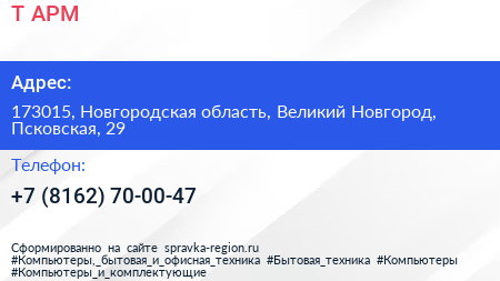 Т-АРМ по адресу 173015, Новгородская область, Великий Новгород, Псковская, 29 в дальнейшем Организация, размещена в следующих категориях: