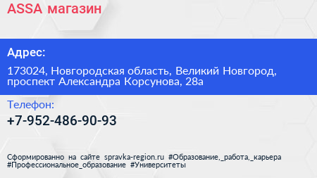 ASSA, магазин по адресу 173024, Новгородская область, Великий Новгород, проспект Александра Корсунова, 28а в дальнейшем Организация, размещена в следующих категориях: