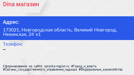 Dina, магазин по адресу 173021, Новгородская область, Великий Новгород, Нехинская, 24 к1 в дальнейшем Организация, размещена в следующих категориях: