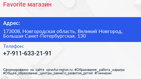 Favorite, магазин по адресу 173008, Новгородская область, Великий Новгород, Большая Санкт-Петербургская, 130 в дальнейшем Организация, размещена в следующих категориях: