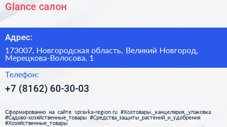 Glance, салон по адресу 173007, Новгородская область, Великий Новгород, Мерецкова-Волосова, 1 в дальнейшем Организация, размещена в следующих категориях: