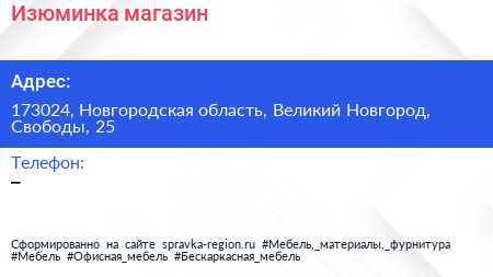Изюминка, магазин по адресу 173024, Новгородская область, Великий Новгород, Свободы, 25 в дальнейшем Организация, размещена в следующих категориях:
