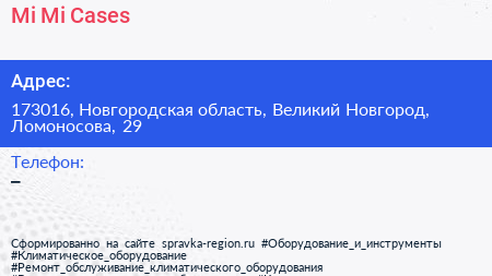 Mi Mi Cases по адресу 173016, Новгородская область, Великий Новгород, Ломоносова, 29 в дальнейшем Организация, размещена в следующих категориях:
