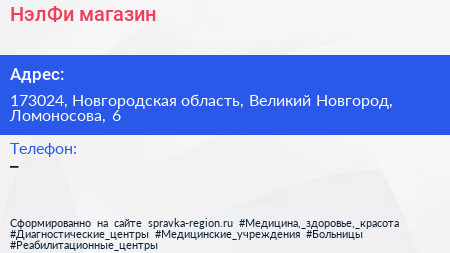 НэлФи, магазин по адресу 173024, Новгородская область, Великий Новгород, Ломоносова, 6 в дальнейшем Организация, размещена в следующих категориях: