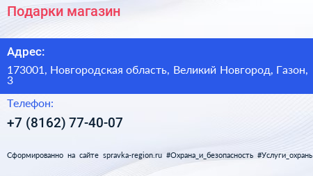 Подарки, магазин по адресу 173001, Новгородская область, Великий Новгород, Газон, 3 в дальнейшем Организация, размещена в следующих категориях: