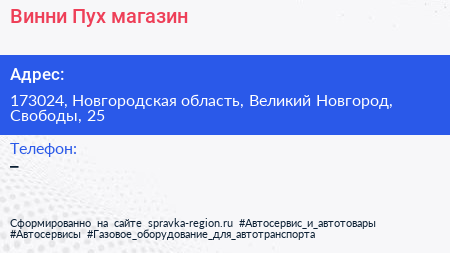 Винни-Пух, магазин по адресу 173024, Новгородская область, Великий Новгород, Свободы, 25 в дальнейшем Организация, размещена в следующих категориях: