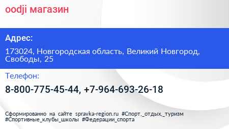 oodji, магазин по адресу 173024, Новгородская область, Великий Новгород, Свободы, 25 в дальнейшем Организация, размещена в следующих категориях: