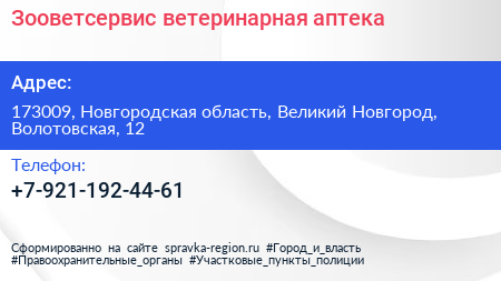 Зооветсервис, ветеринарная аптека по адресу 173009, Новгородская область, Великий Новгород, Волотовская, 12 в дальнейшем Организация, размещена в следующих категориях: