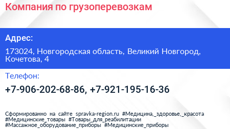 Компания по грузоперевозкам по адресу 173024, Новгородская область, Великий Новгород, Кочетова, 4 в дальнейшем Организация, размещена в следующих категориях: