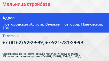 Мельница, стройбаза по адресу Новгородская область, Великий Новгород, Панковская, 13а в дальнейшем Организация, размещена в следующих категориях: