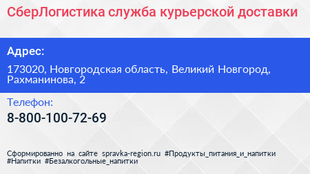 СберЛогистика, служба курьерской доставки по адресу 173020, Новгородская область, Великий Новгород, Рахманинова, 2 в дальнейшем Организация, размещена в следующих категориях:
