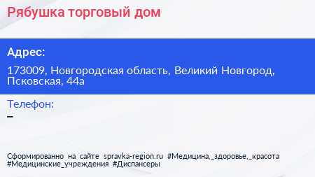 Рябушка, торговый дом по адресу 173009, Новгородская область, Великий Новгород, Псковская, 44а в дальнейшем Организация, размещена в следующих категориях: