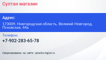 Султан, магазин по адресу 173009, Новгородская область, Великий Новгород, Псковская, 44а в дальнейшем Организация, размещена в следующих категориях: