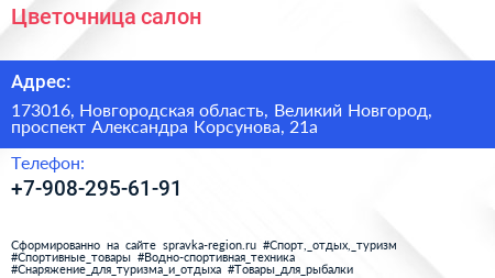 Цветочница, салон по адресу 173016, Новгородская область, Великий Новгород, проспект Александра Корсунова, 21а в дальнейшем Организация, размещена в следующих категориях:
