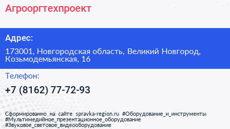 Агрооргтехпроект по адресу 173001, Новгородская область, Великий Новгород, Козьмодемьянская, 16 в дальнейшем Организация, размещена в следующих категориях: