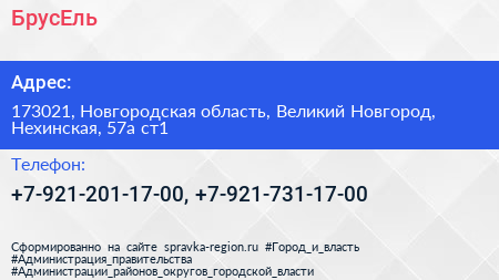 БрусЕль по адресу 173021, Новгородская область, Великий Новгород, Нехинская, 57а ст1 в дальнейшем Организация, размещена в следующих категориях: