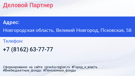 Деловой Партнер по адресу Новгородская область, Великий Новгород, Псковская, 58 в дальнейшем Организация, размещена в следующих категориях: