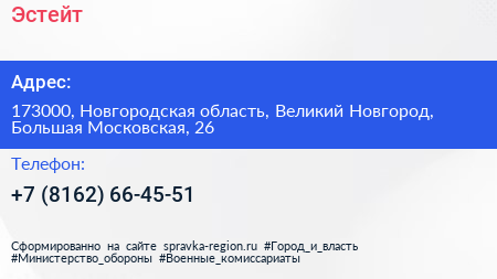 Эстейт по адресу 173000, Новгородская область, Великий Новгород, Большая Московская, 26 в дальнейшем Организация, размещена в следующих категориях: