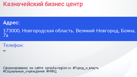 Казначейский, бизнес-центр по адресу 173000, Новгородская область, Великий Новгород, Бояна, 7а в дальнейшем Организация, размещена в следующих категориях: