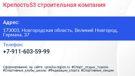 Крепость53, строительная компания по адресу 173003, Новгородская область, Великий Новгород, Германа, 37 в дальнейшем Организация, размещена в следующих категориях: