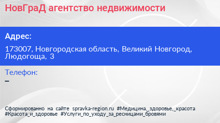 НовГраД, агентство недвижимости по адресу 173007, Новгородская область, Великий Новгород, Людогоща, 3 в дальнейшем Организация, размещена в следующих категориях: