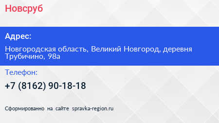 Новсруб по адресу Новгородская область, Великий Новгород, деревня Трубичино, 98а в дальнейшем Организация, размещена в следующих категориях: