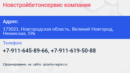 Новстройбетонсервис, компания по адресу 173021, Новгородская область, Великий Новгород, Нехинская, 59в в дальнейшем Организация, размещена в следующих категориях: