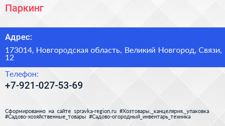 Паркинг по адресу 173014, Новгородская область, Великий Новгород, Связи, 12 в дальнейшем Организация, размещена в следующих категориях: