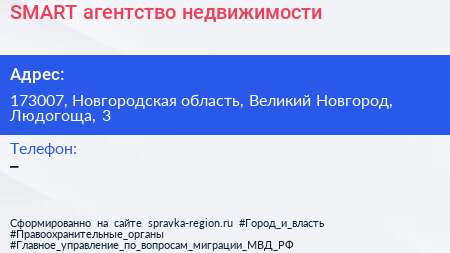 SMART, агентство недвижимости по адресу 173007, Новгородская область, Великий Новгород, Людогоща, 3 в дальнейшем Организация, размещена в следующих категориях:
