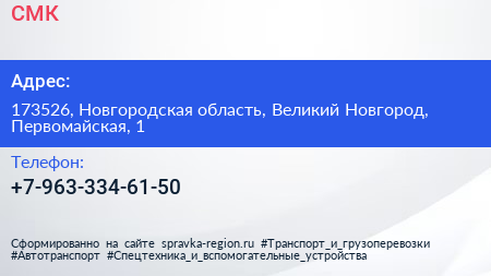 СМК по адресу 173526, Новгородская область, Великий Новгород, Первомайская, 1 в дальнейшем Организация, размещена в следующих категориях: