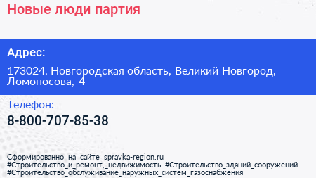 Новые люди, партия по адресу 173024, Новгородская область, Великий Новгород, Ломоносова, 4 в дальнейшем Организация, размещена в следующих категориях: