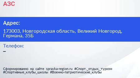 АЗС по адресу 173003, Новгородская область, Великий Новгород, Германа, 35Б в дальнейшем Организация, размещена в следующих категориях: