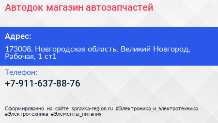 Автодок, магазин автозапчастей по адресу 173008, Новгородская область, Великий Новгород, Рабочая, 1 ст1 в дальнейшем Организация, размещена в следующих категориях:
