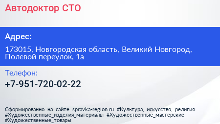Автодоктор, СТО по адресу 173015, Новгородская область, Великий Новгород, Полевой переулок, 1а в дальнейшем Организация, размещена в следующих категориях:
