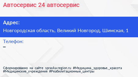 Автосервис 24, автосервис по адресу Новгородская область, Великий Новгород, Шимская, 1 в дальнейшем Организация, размещена в следующих категориях: