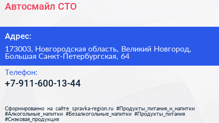 Автосмайл, СТО по адресу 173003, Новгородская область, Великий Новгород, Большая Санкт-Петербургская, 64 в дальнейшем Организация, размещена в следующих категориях: