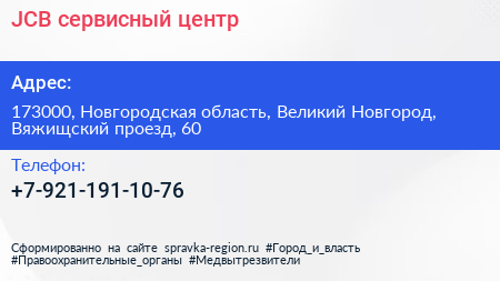 JCB, сервисный центр по адресу 173000, Новгородская область, Великий Новгород, Вяжищский проезд, 60 в дальнейшем Организация, размещена в следующих категориях: