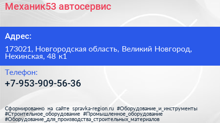 Механик53, автосервис по адресу 173021, Новгородская область, Великий Новгород, Нехинская, 48 к1 в дальнейшем Организация, размещена в следующих категориях: