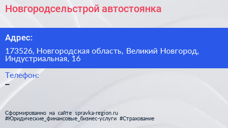 Новгородсельстрой, автостоянка по адресу 173526, Новгородская область, Великий Новгород, Индустриальная, 16 в дальнейшем Организация, размещена в следующих категориях: