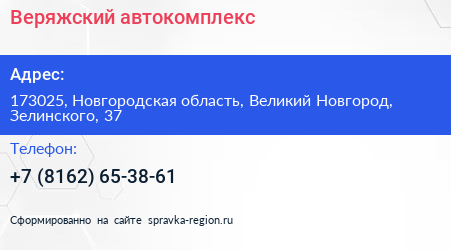 Веряжский, автокомплекс по адресу 173025, Новгородская область, Великий Новгород, Зелинского, 37 в дальнейшем Организация, размещена в следующих категориях:
