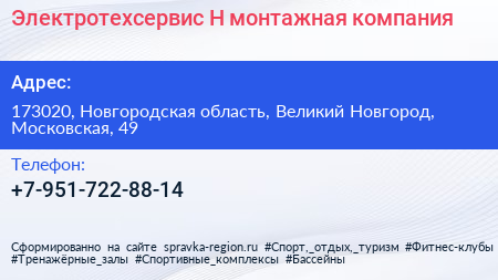 Электротехсервис-Н, монтажная компания по адресу 173020, Новгородская область, Великий Новгород, Московская, 49 в дальнейшем Организация, размещена в следующих категориях: